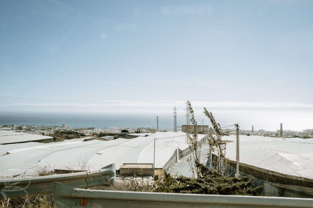 Die „Gemüsekammer Europa“ in Almería erntet jährlich etwa 4,5 Millionen Tonnen Obst und Gemüse, darunter Tomaten, Paprika, Gurken, Auberginen, Zucchini, Melonen und Wassermelonen. Unsere beeindruckende Aussicht von der Autobahn aus.