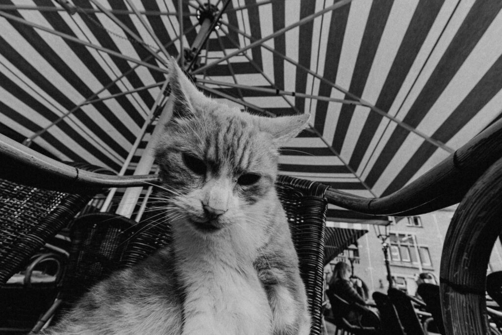 Wir wollten unbedingt noch frühstücken, und zu uns gesellte sich der Kater des Hauses, ein neugieriger kleiner Kerl. Er kam nur zum Putzen und war dann wieder fort.