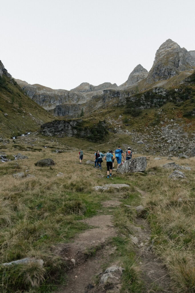 Der Anstieg ist gleichmäßig, aber konditionell fordernd. Nach ca. 2 Stunden erreichten wir schließlich die Preintalerhütte, idyllisch gelegen und umgeben von beeindruckender Bergkulisse. Hier ließen wir den Tag ausklingen, stärkten uns bei gutem Essen und genossen die Ruhe der Berge – perfekte Voraussetzungen für den nächsten Wandertag.