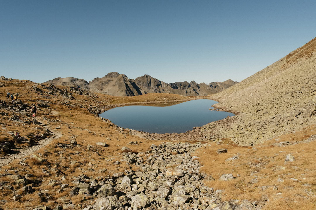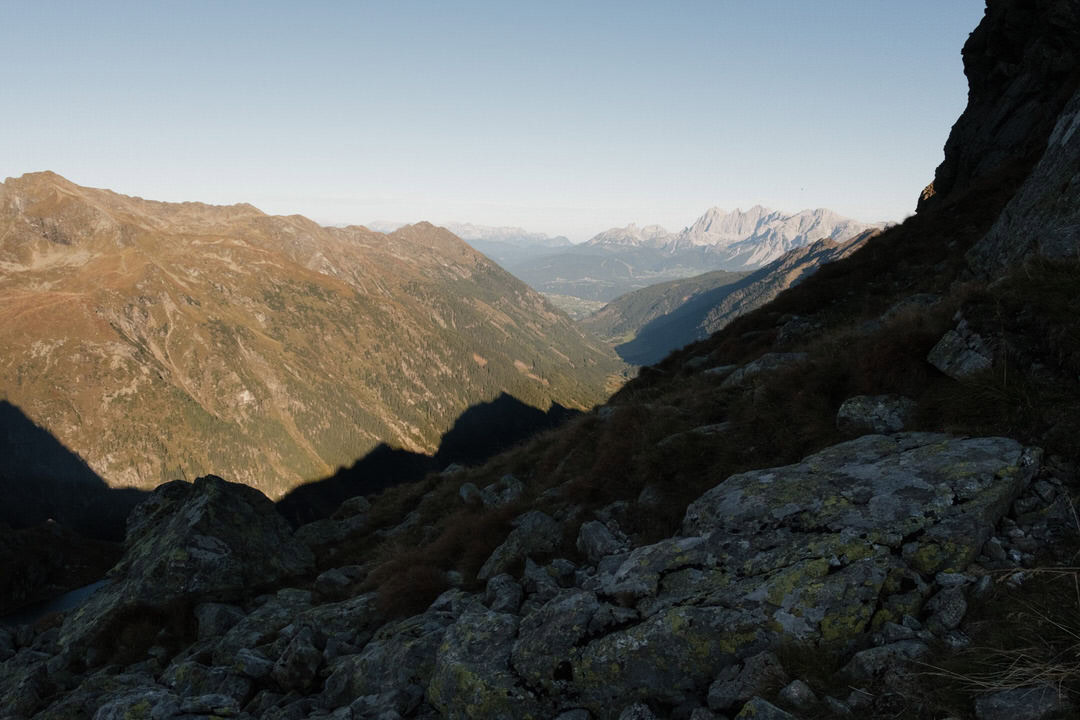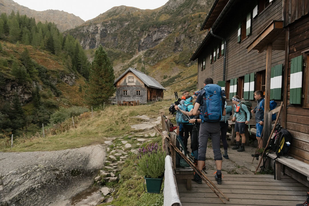 Am zweiten Tag ging es früh los in Richtung Klafferkessel, einer einzigartigen Hochgebirgslandschaft mit zahlreichen kleinen Seen, die sich wie Perlen in der Landschaft verteilen. Der Weg zur Gollinghütte führte über steiniges Gelände und alpine Pfade, immer wieder begleitet von atemberaubenden Ausblicken auf Wasser, Fels und Gipfel.