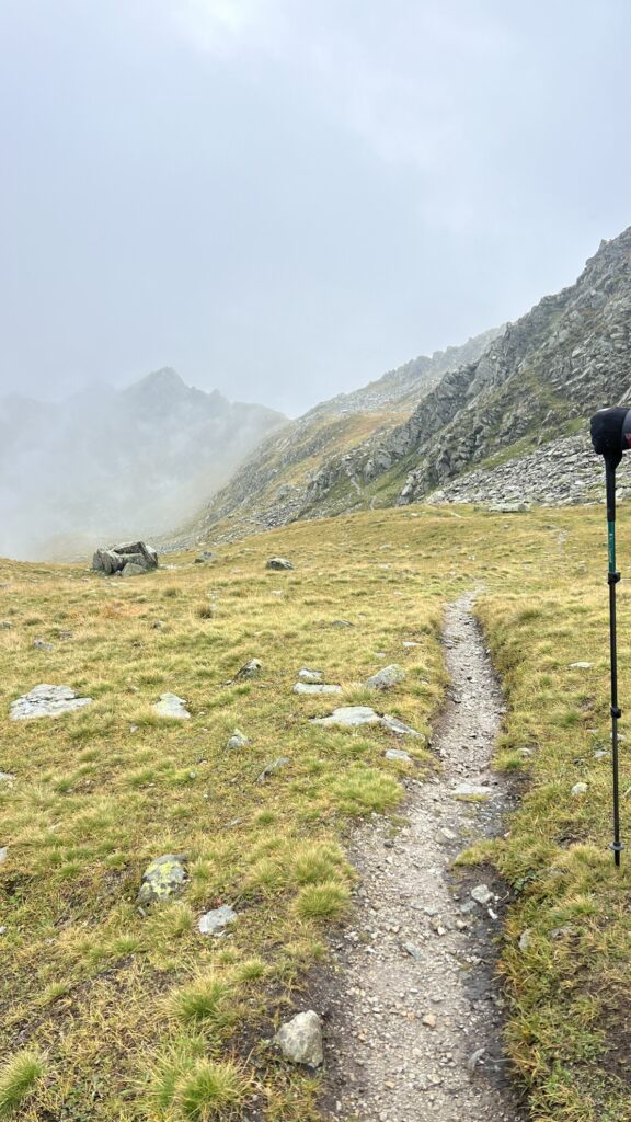 Es hat immer wieder geregnet, was die Wanderung nicht einfacher machte. Die Wege waren rutschig und schwer zu begehen. Zeitweise war auch die Hose komplett durchnässt, und am Ende des Tages waren die Schuhe so nass, dass das Wasser herauslief.
