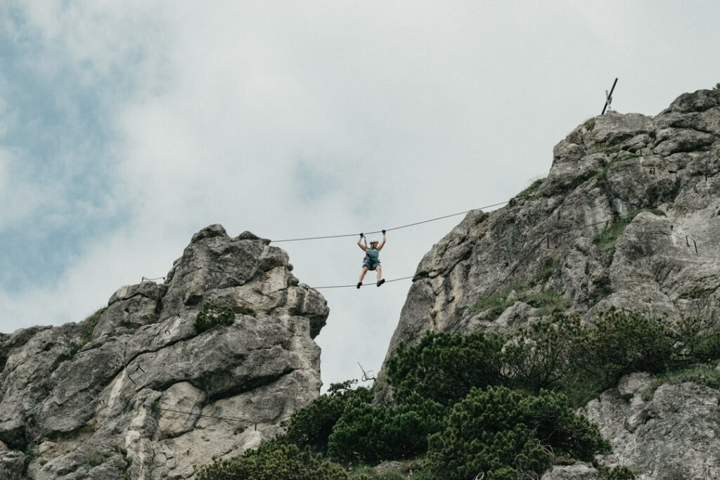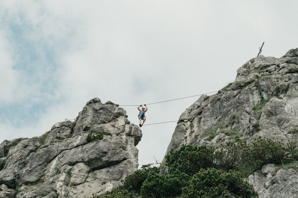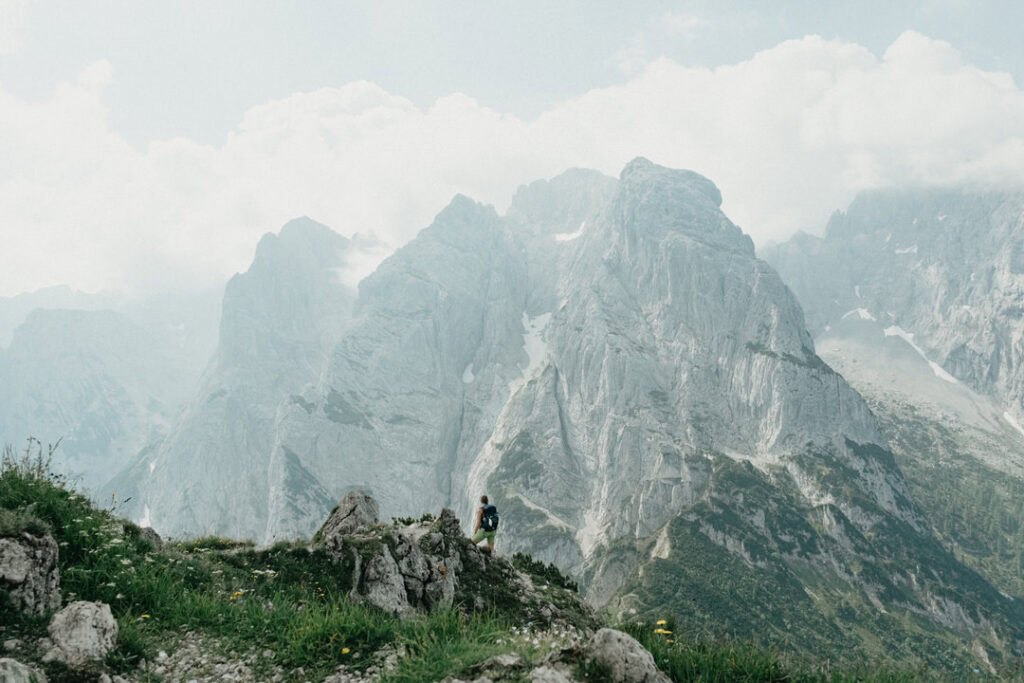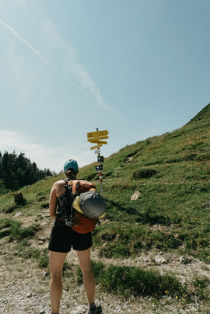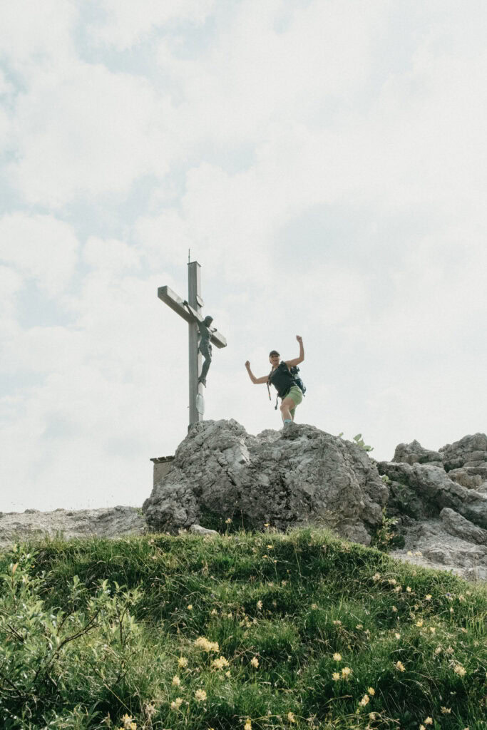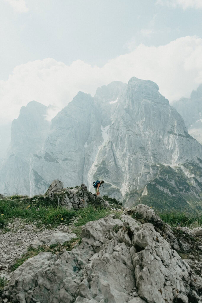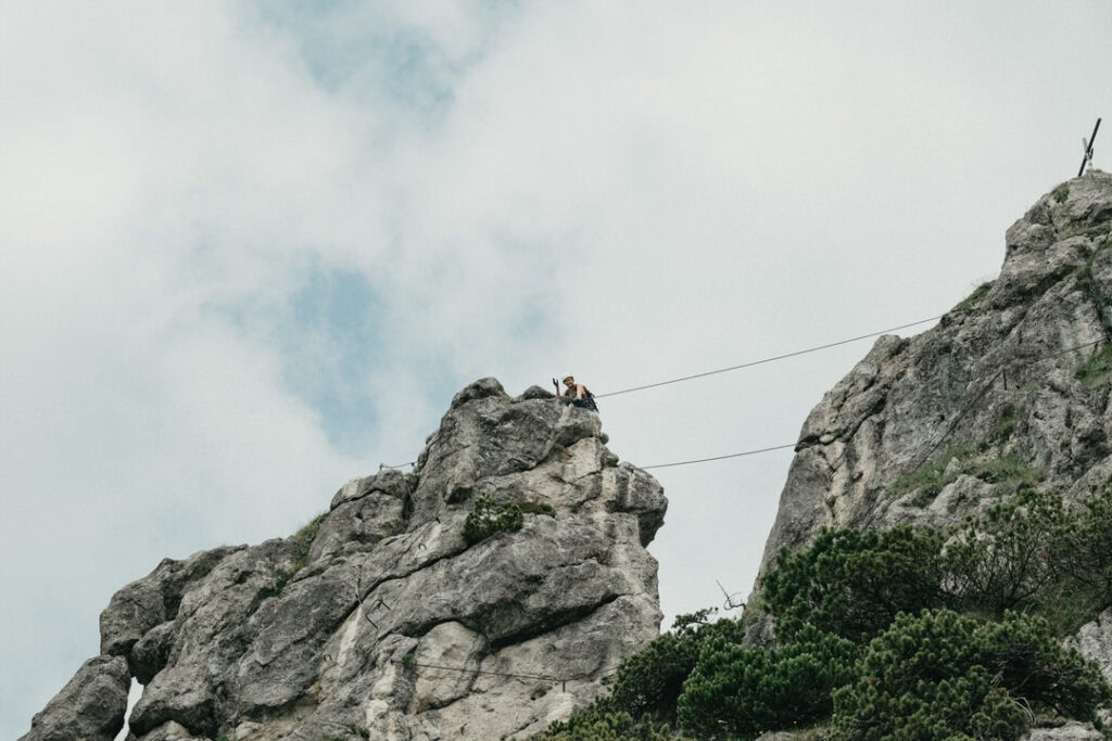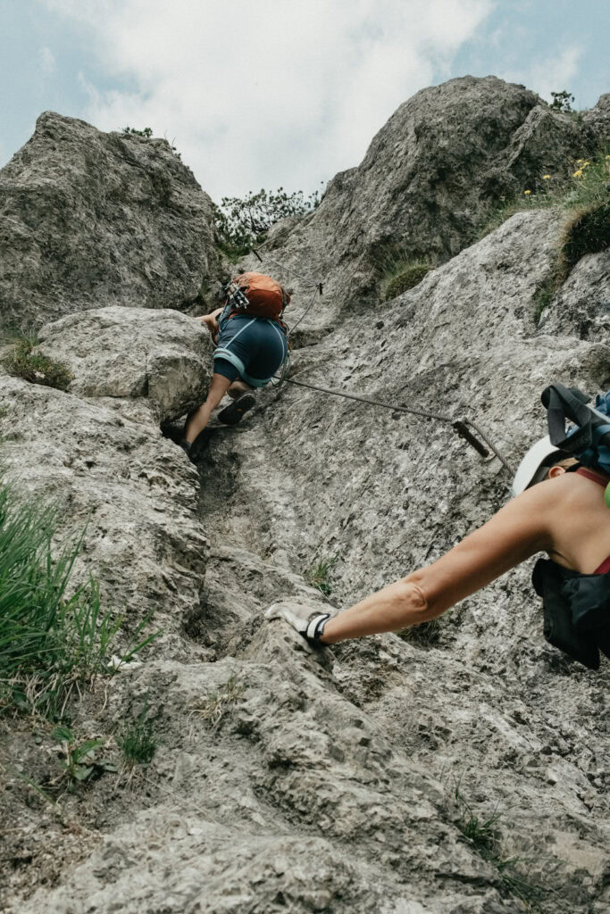 An Tag zwei stand noch eine kleine Kletterei an. Danach trennten sich unsere Wege: Da meine Oberschenkel etwas schmerzten und ich nicht der Langsamste der Gruppe sein wollte, entschieden wir uns, uns aufzuteilen. Für mich ging es zurück zur Hütte, während die Mädels am Kamm entlang zum Tristecken und Feldberg wanderten. Sie wählten anschließend den Abstieg über die Griesner Alm, um wieder zum Stripsenjochhaus zu gelangen. Ich nutzte die Zeit für eine ausgiebige Pause und konnte die Aussicht in Ruhe genießen.