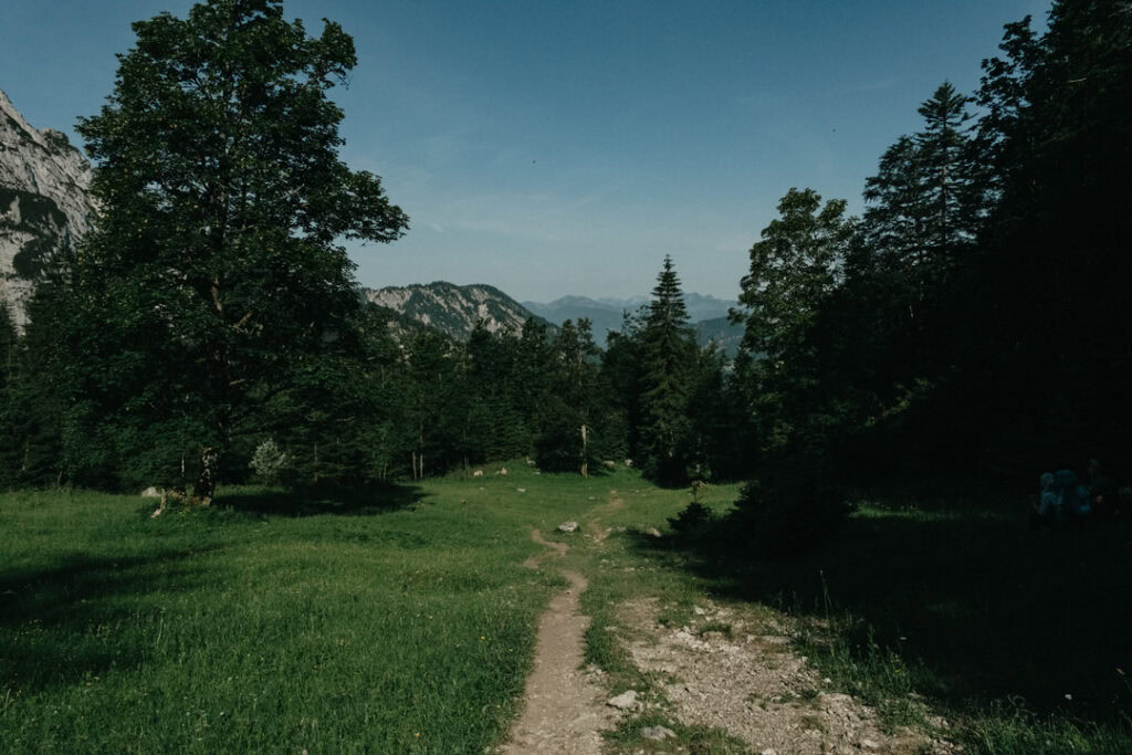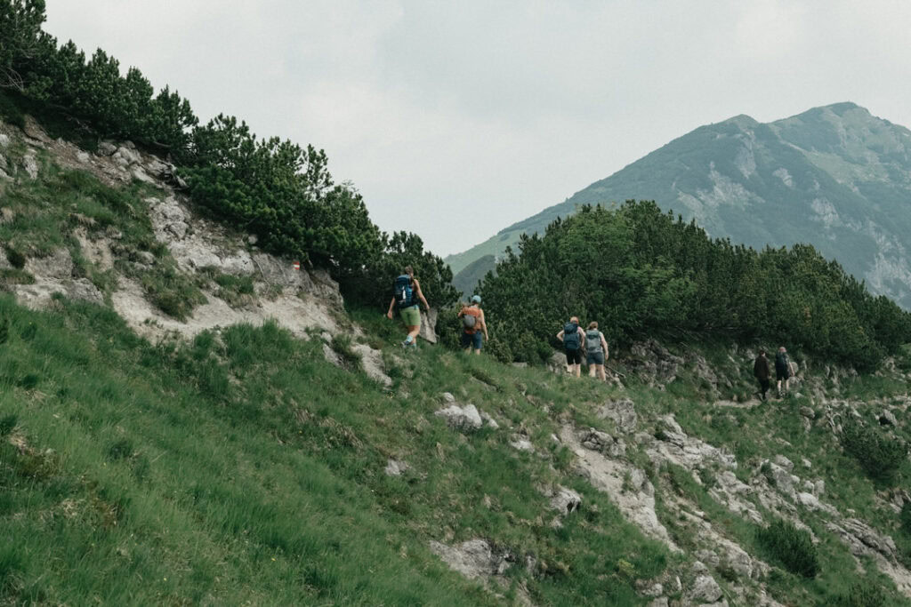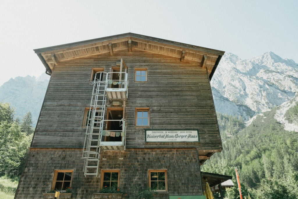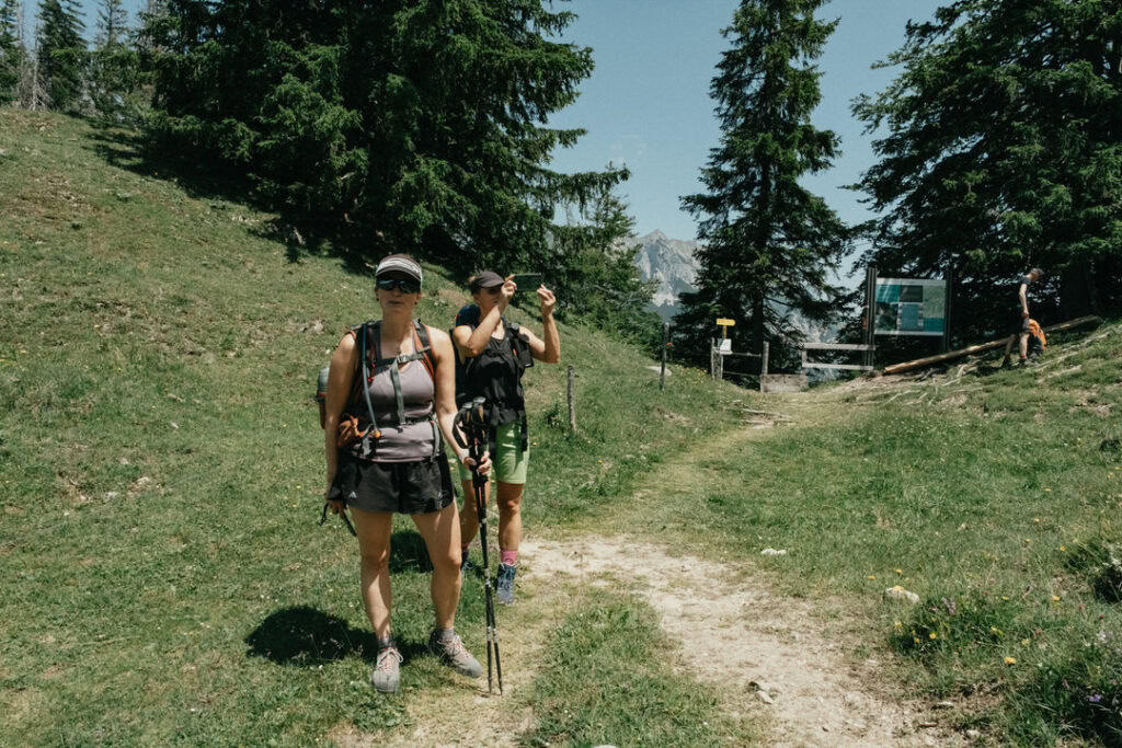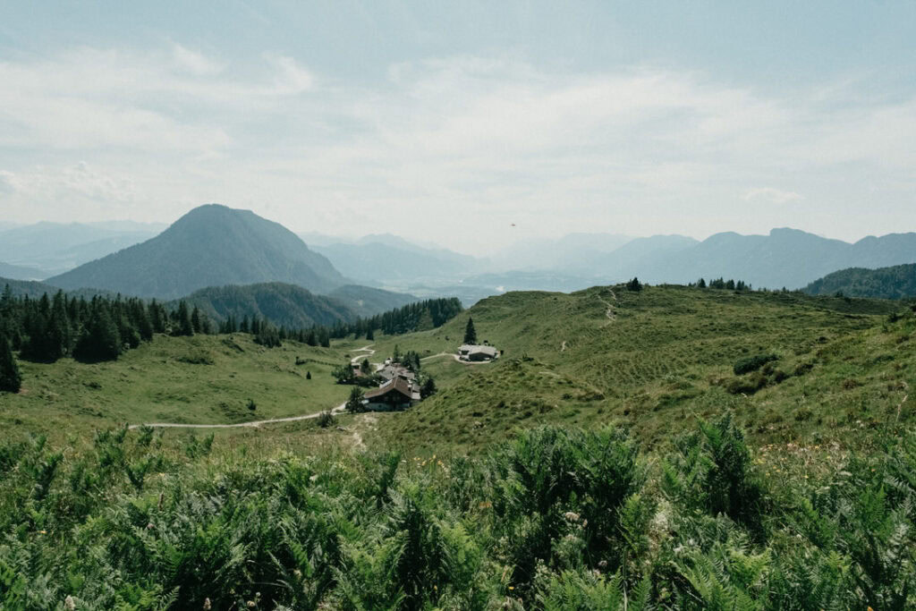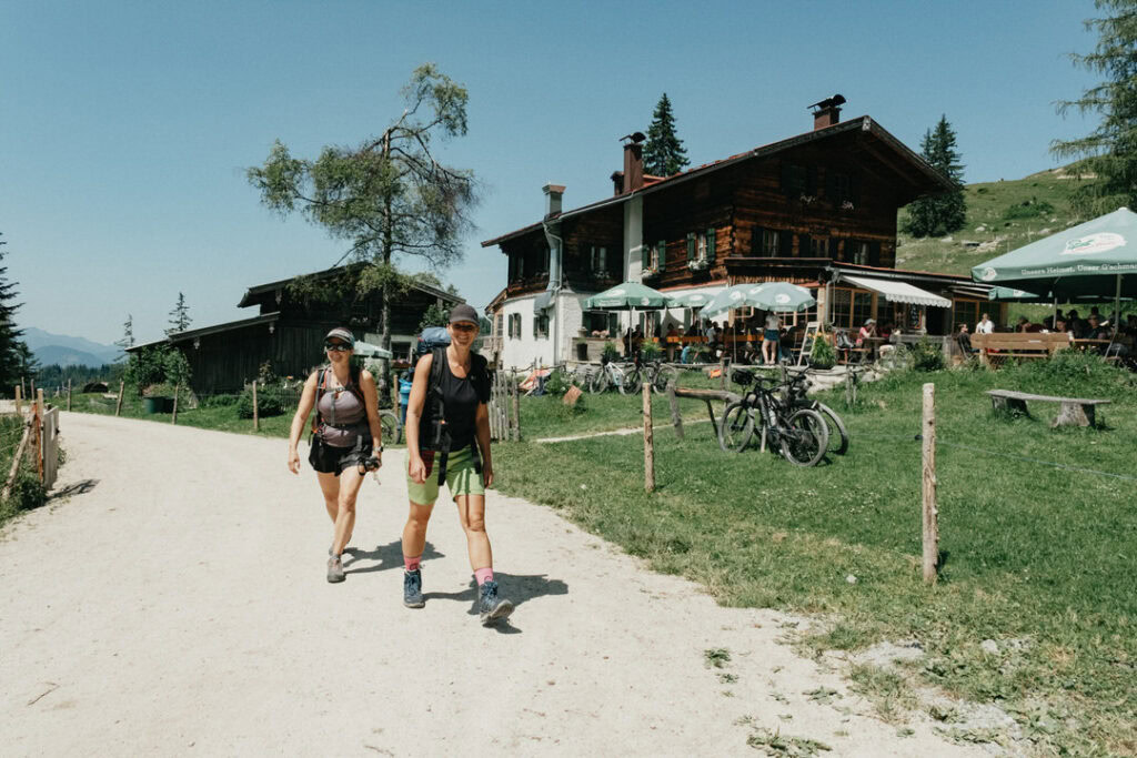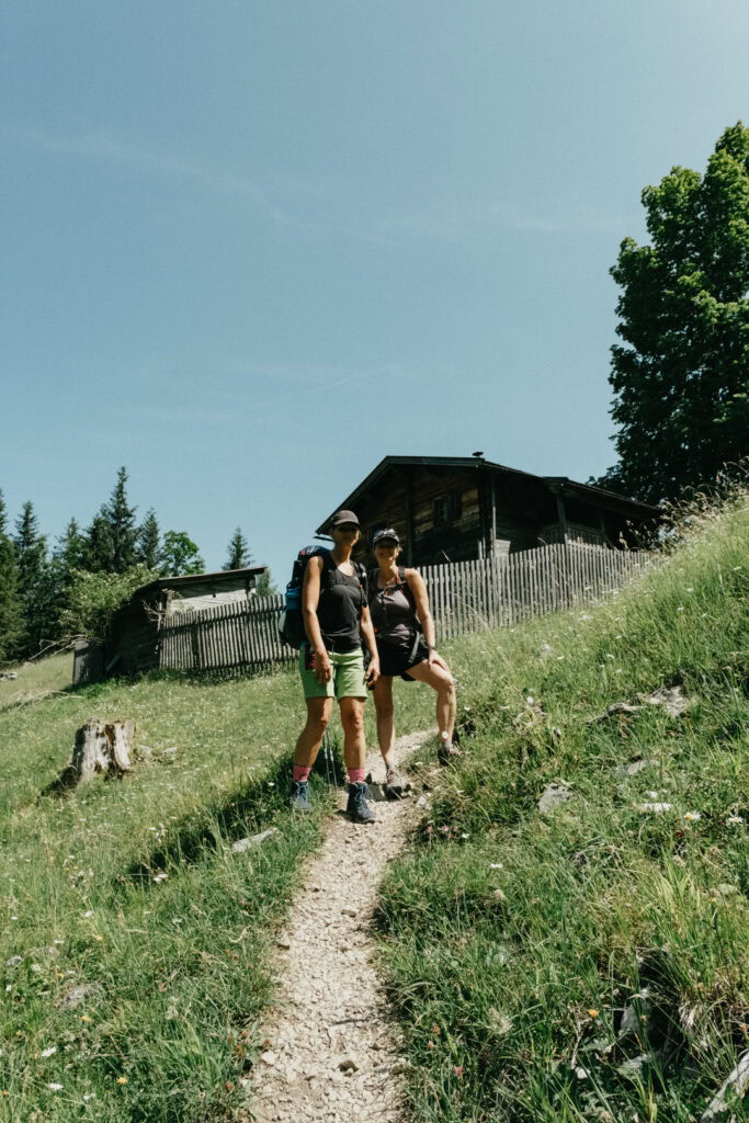 Frisch gestärkt ging es am nächsten Morgen zurück ins Tal. Vom Stripsenjochhaus (1.577 m) startet ihr in östlicher Richtung auf dem markierten Wanderweg, der zunächst leicht bergab über Almwiesen und durch lichte Wälder führt. Nach kurzer Zeit erreicht ihr das Hasberger Haus, geht vorbei am Hinterbärenbad hinab zur Kaindlhütte und weiter vorbei am Hochegg und Kreuzbichl.