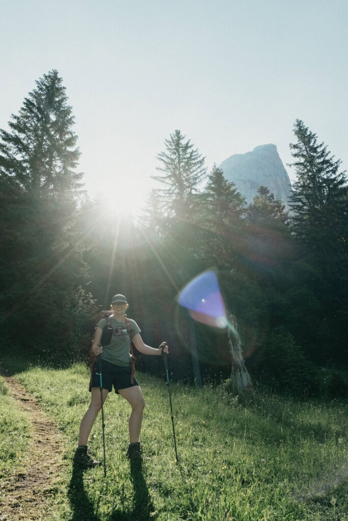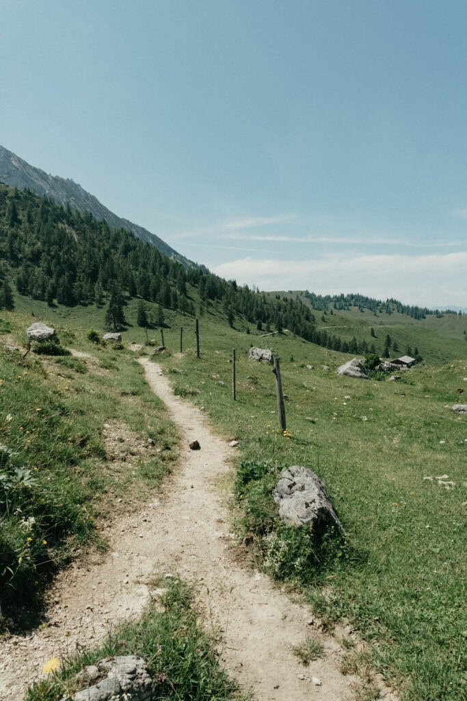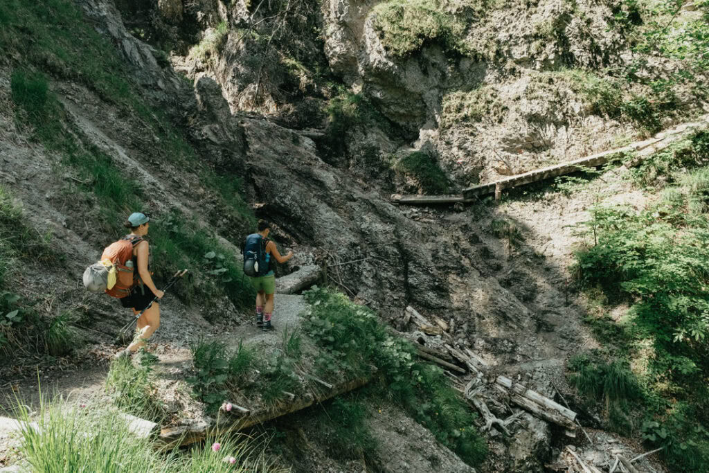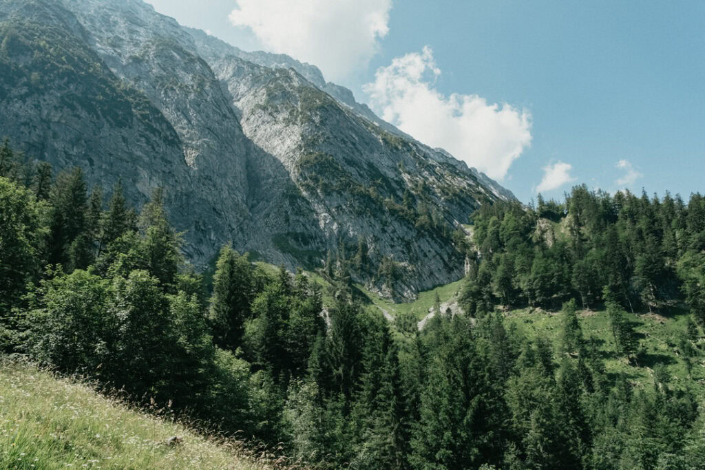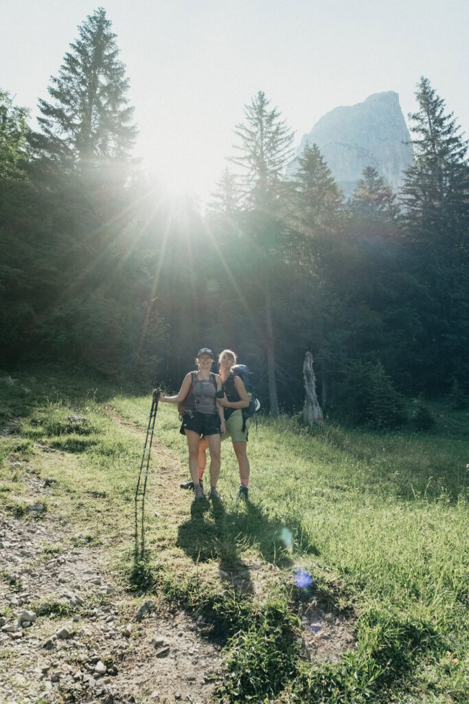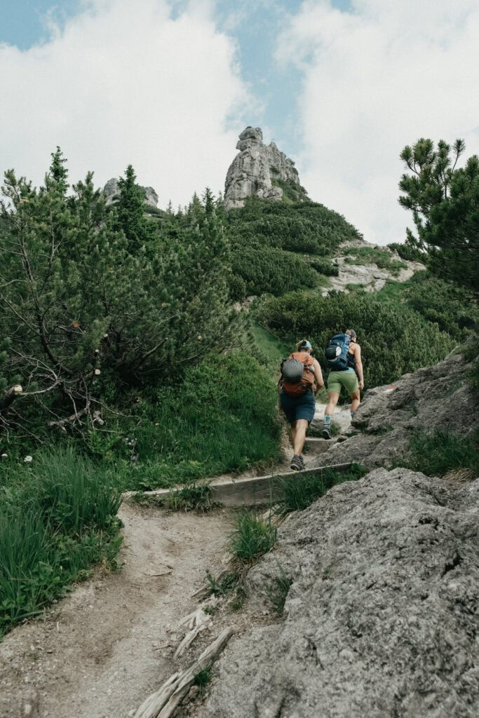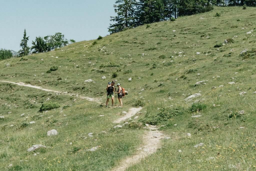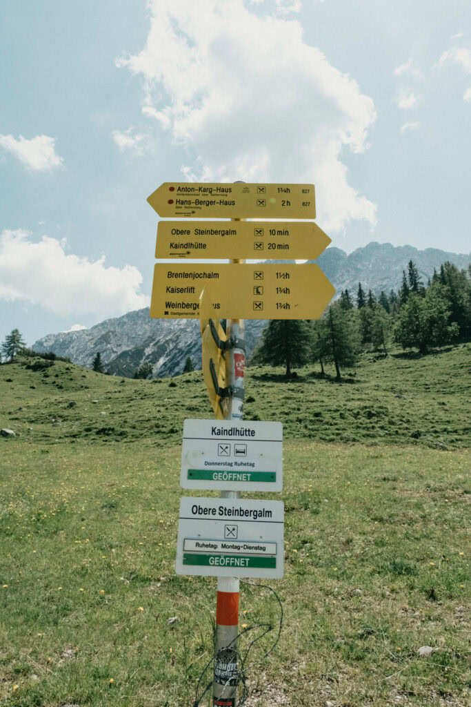 Frisch gestärkt ging es am nächsten Morgen zurück ins Tal. Vom Stripsenjochhaus (1.577 m) startet ihr in östlicher Richtung auf dem markierten Wanderweg, der zunächst leicht bergab über Almwiesen und durch lichte Wälder führt. Nach kurzer Zeit erreicht ihr das Hasberger Haus, geht vorbei am Hinterbärenbad hinab zur Kaindlhütte und weiter vorbei am Hochegg und Kreuzbichl.
