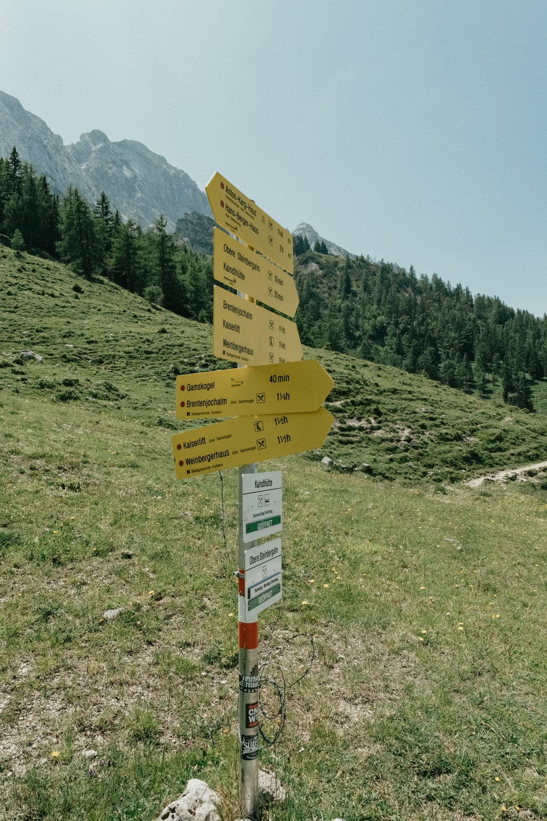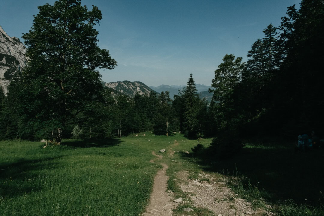 Frisch gestärkt ging es am nächsten Morgen zurück ins Tal. Vom Stripsenjochhaus (1.577 m) startet ihr in östlicher Richtung auf dem markierten Wanderweg, der zunächst leicht bergab über Almwiesen und durch lichte Wälder führt. Nach kurzer Zeit erreicht ihr das Hasberger Haus, geht vorbei am Hinterbärenbad hinab zur Kaindlhütte und weiter vorbei am Hochegg und Kreuzbichl.