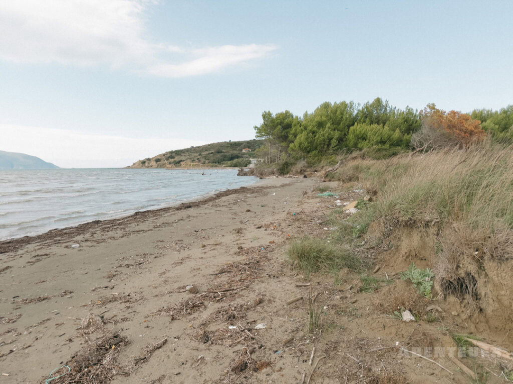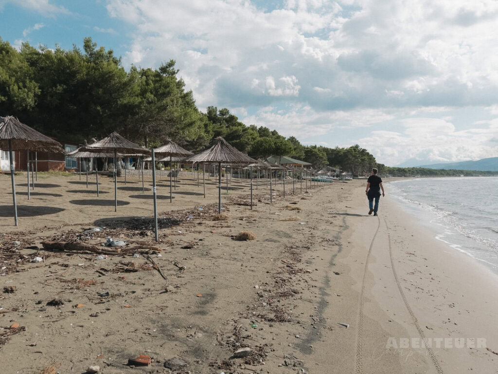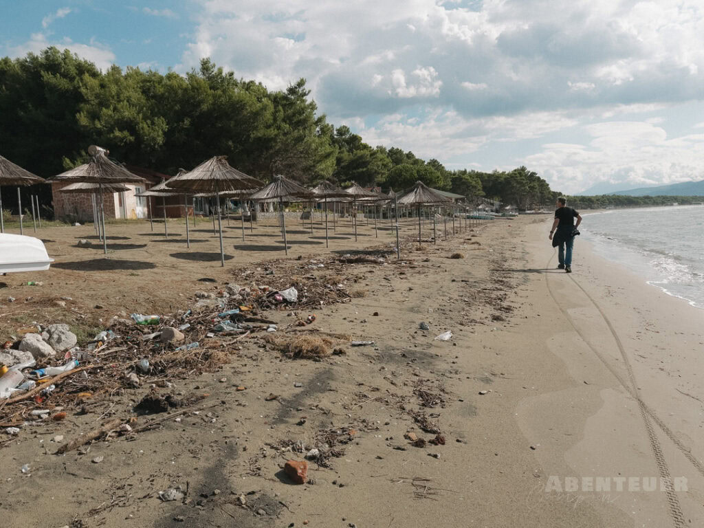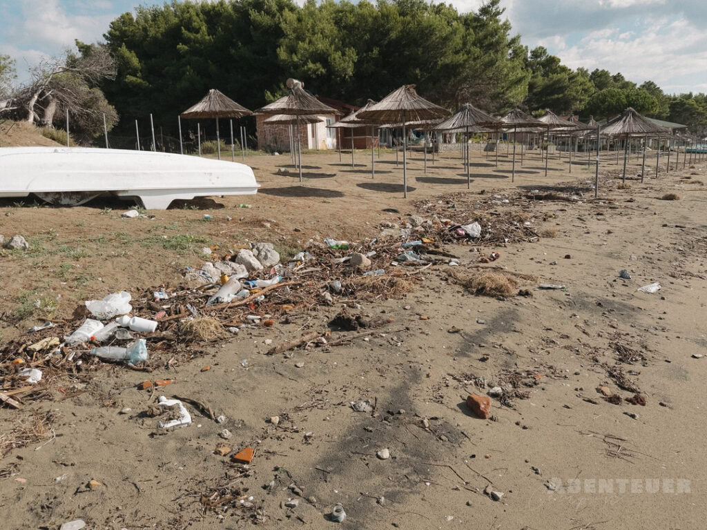 So schön die Landschaft auch ist, ein Thema begleitet uns hier leider immer wieder: Müll. Nicht nur im Meer, sondern auch im Wald und entlang der Wege ist davon einiges zu sehen. Da wir außerhalb der Saison unterwegs sind, liegen selbst neben den Strandliegen noch viele Überreste – ein starker Kontrast zur eigentlich beeindruckenden Natur dieser Region.
