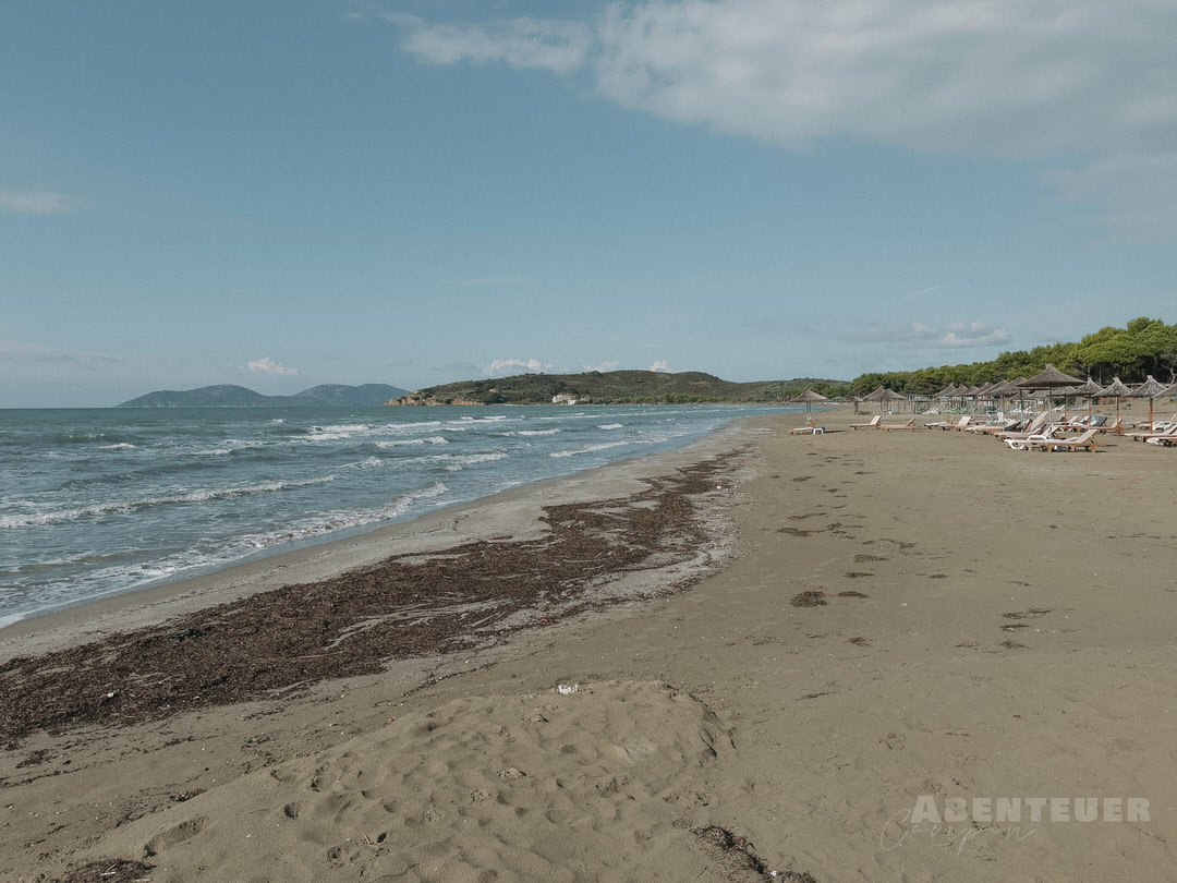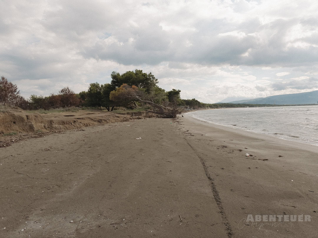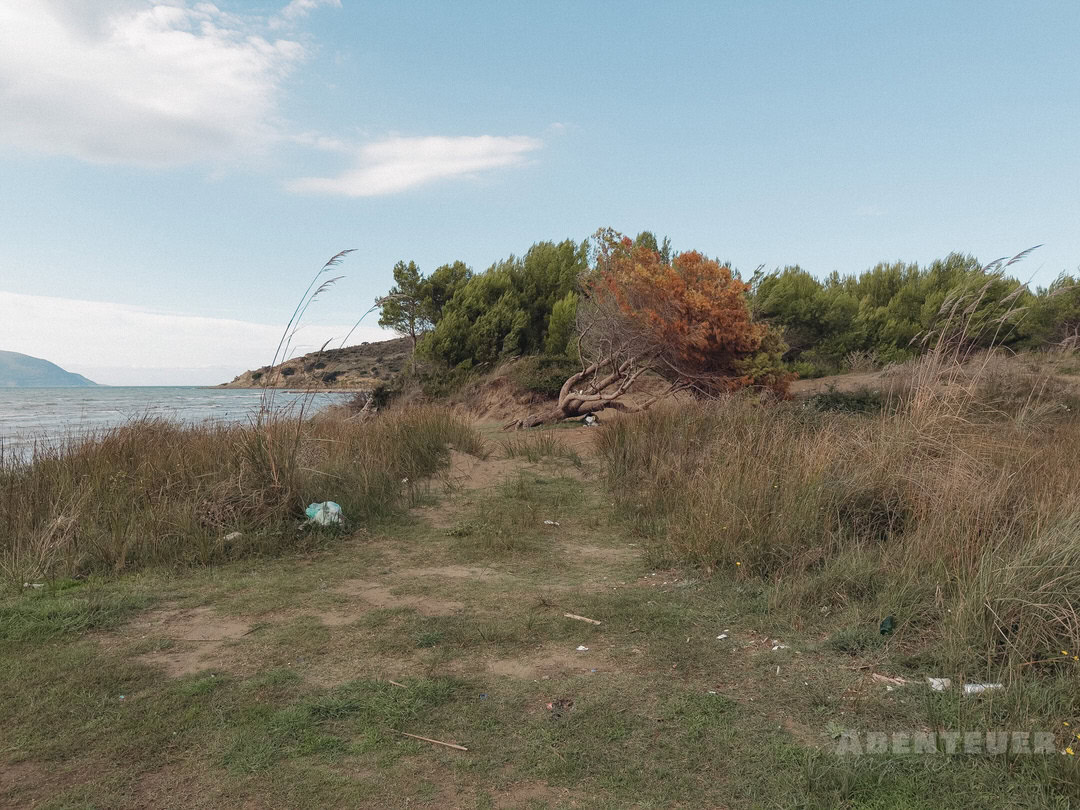 So schön die Landschaft auch ist, ein Thema begleitet uns hier leider immer wieder: Müll. Nicht nur im Meer, sondern auch im Wald und entlang der Wege ist davon einiges zu sehen. Da wir außerhalb der Saison unterwegs sind, liegen selbst neben den Strandliegen noch viele Überreste – ein starker Kontrast zur eigentlich beeindruckenden Natur dieser Region.