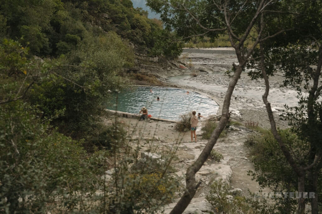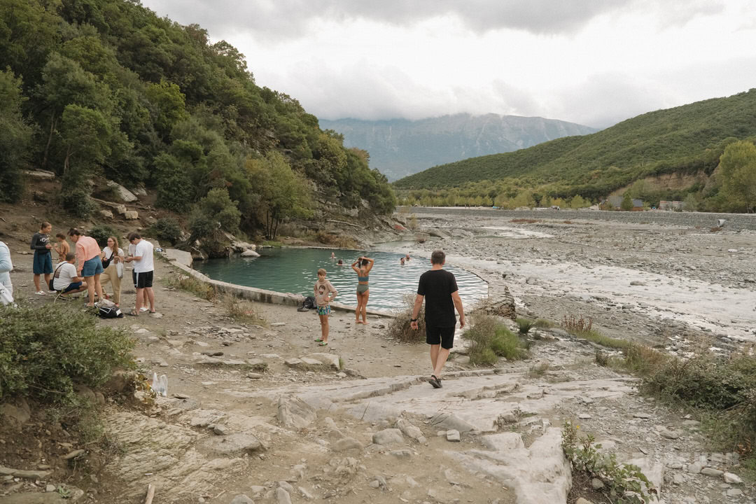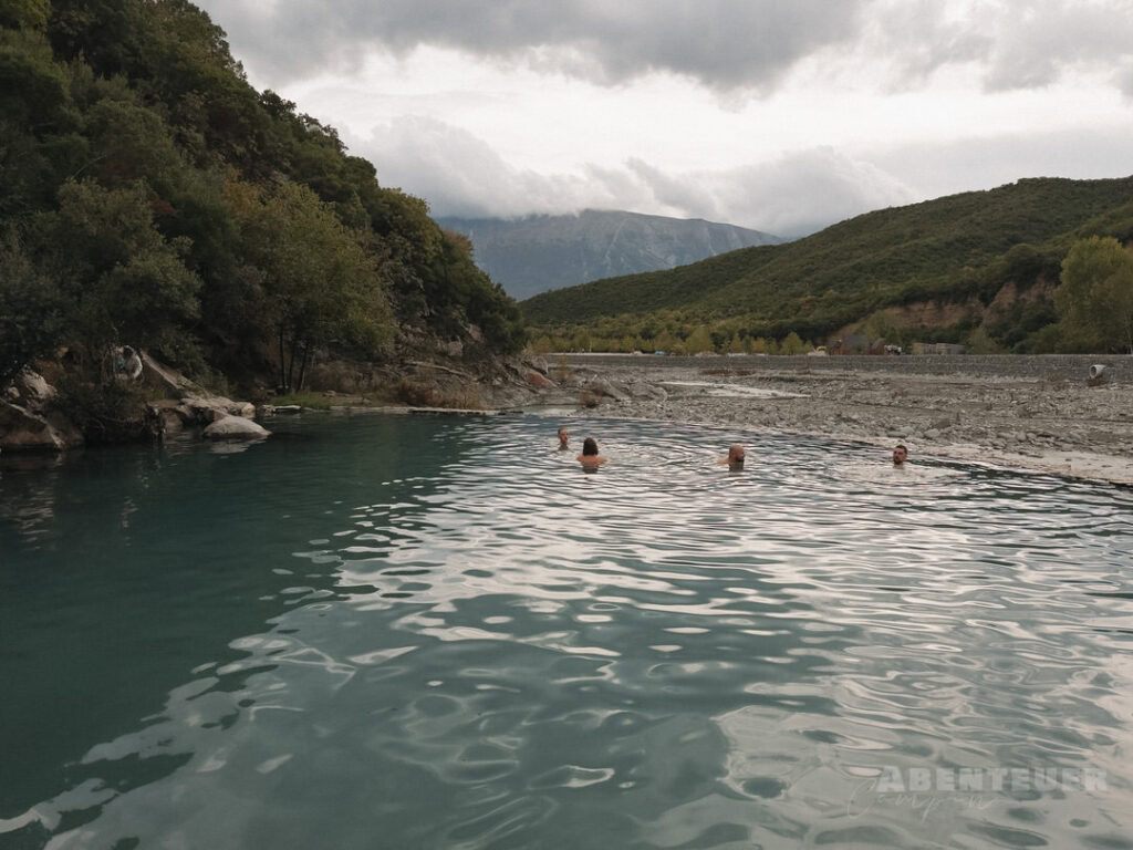 Unser nächstes Ziel waren die heißen Quellen nahe der griechischen Grenze, die Benja Thermal Baths in Përmet. Dort angekommen, starteten wir direkt eine kleine Erkundungstour. Zum Baden war es für uns an diesem Tag bereits zu spät – also erst einmal nur schauen, staunen und die Umgebung auf uns wirken lassen.