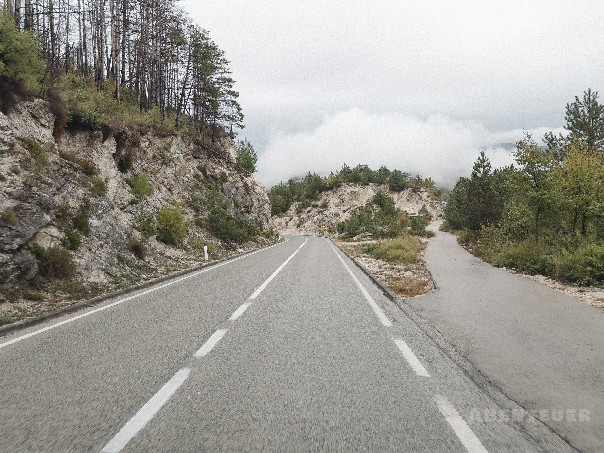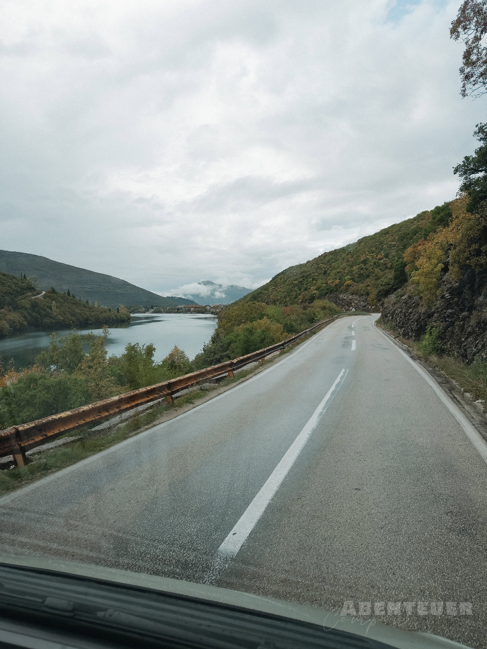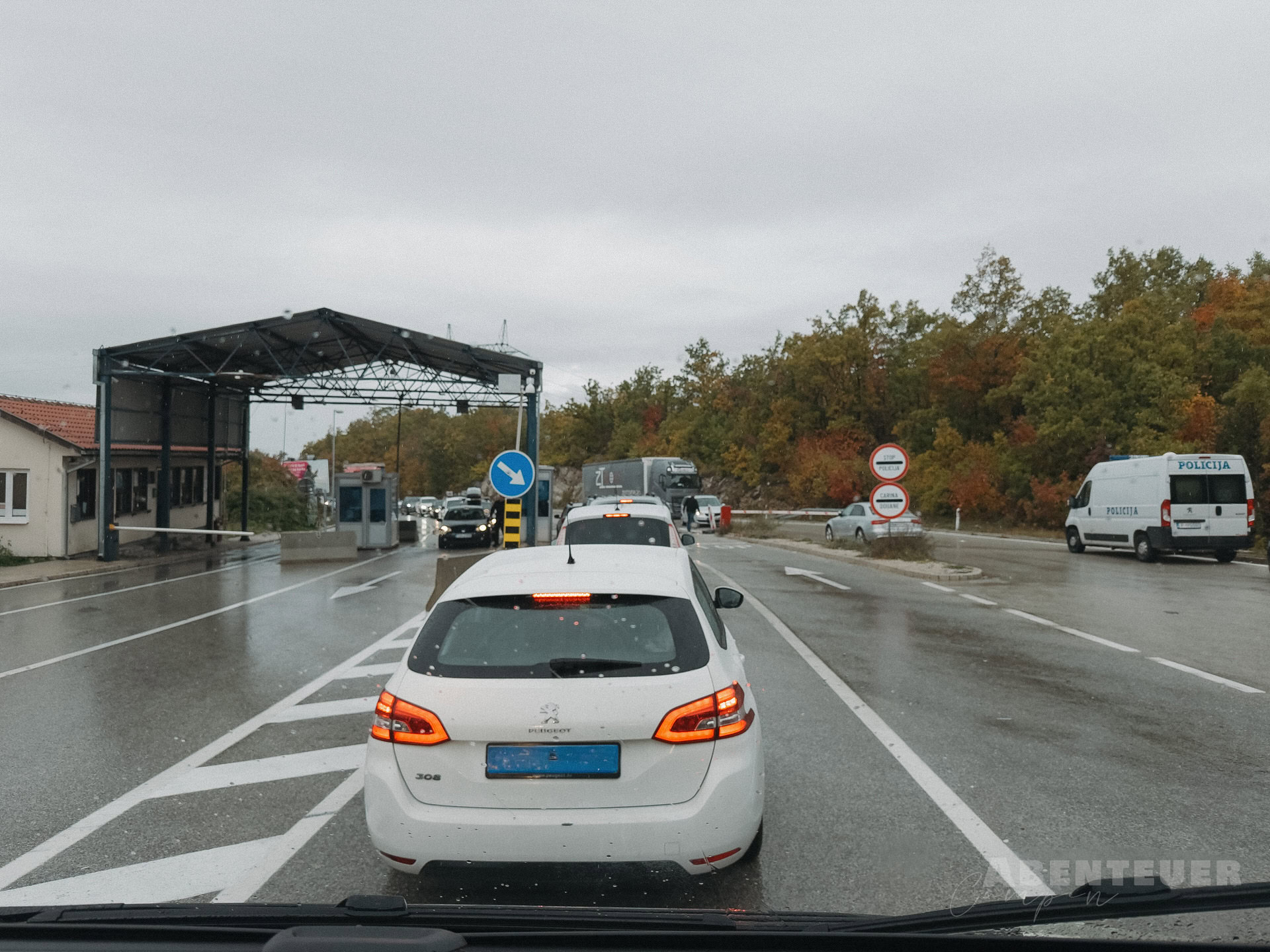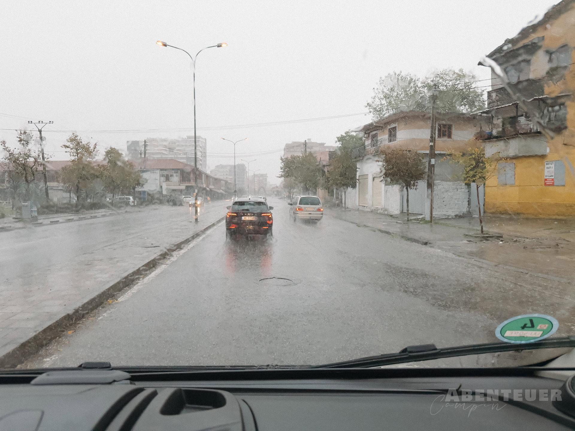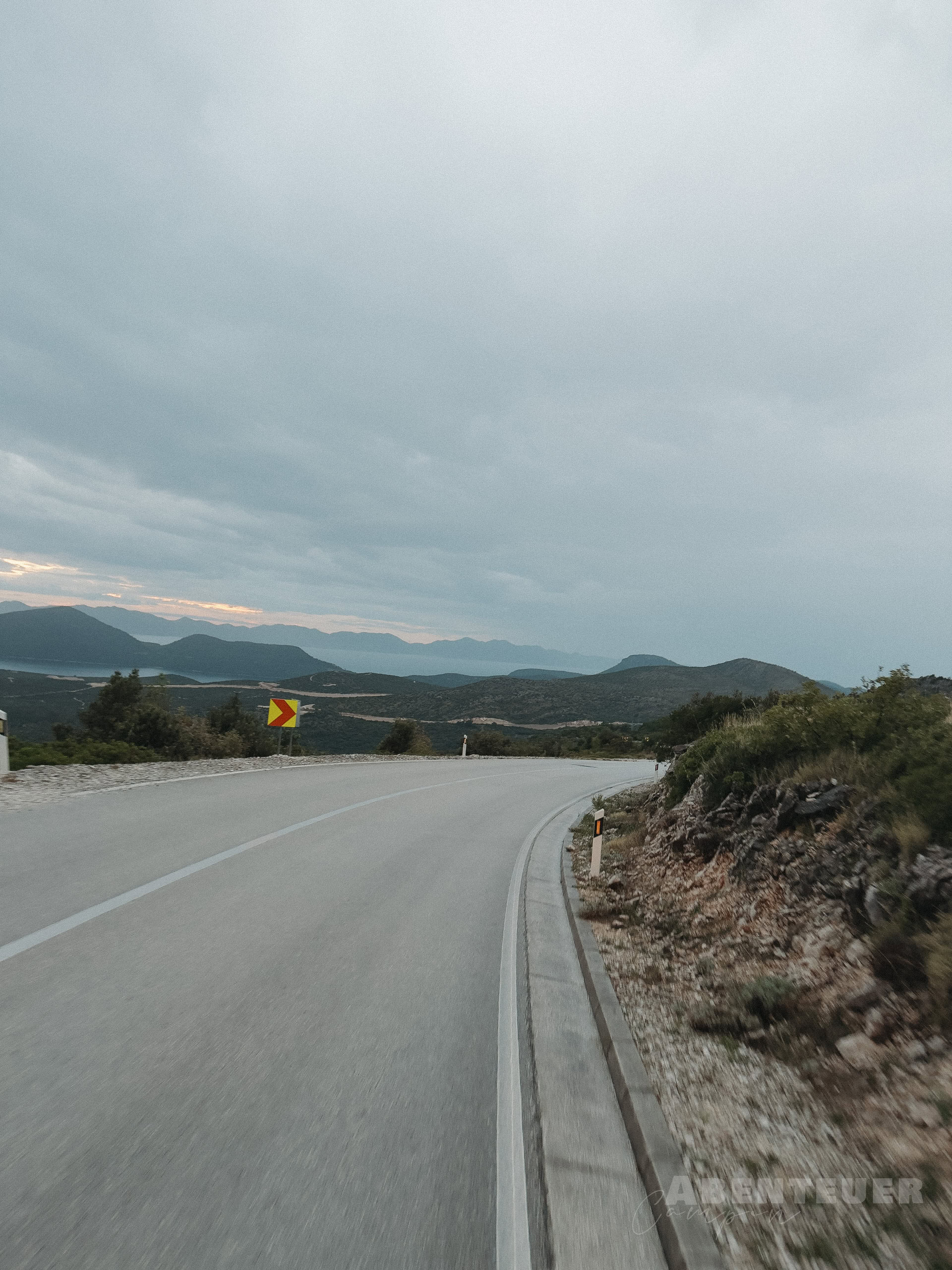 Wir verlassen das Sunset Camp in Albanien und machen uns wieder auf den Weg Richtung Kroatien. Schon bald zieht schlechtes Wetter auf – dieses Mal regnet es richtig heftig und begleitet uns fast die gesamte Strecke.