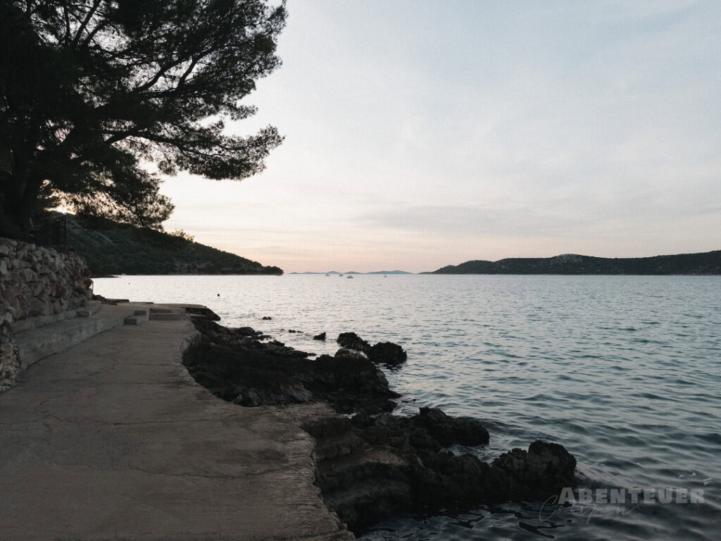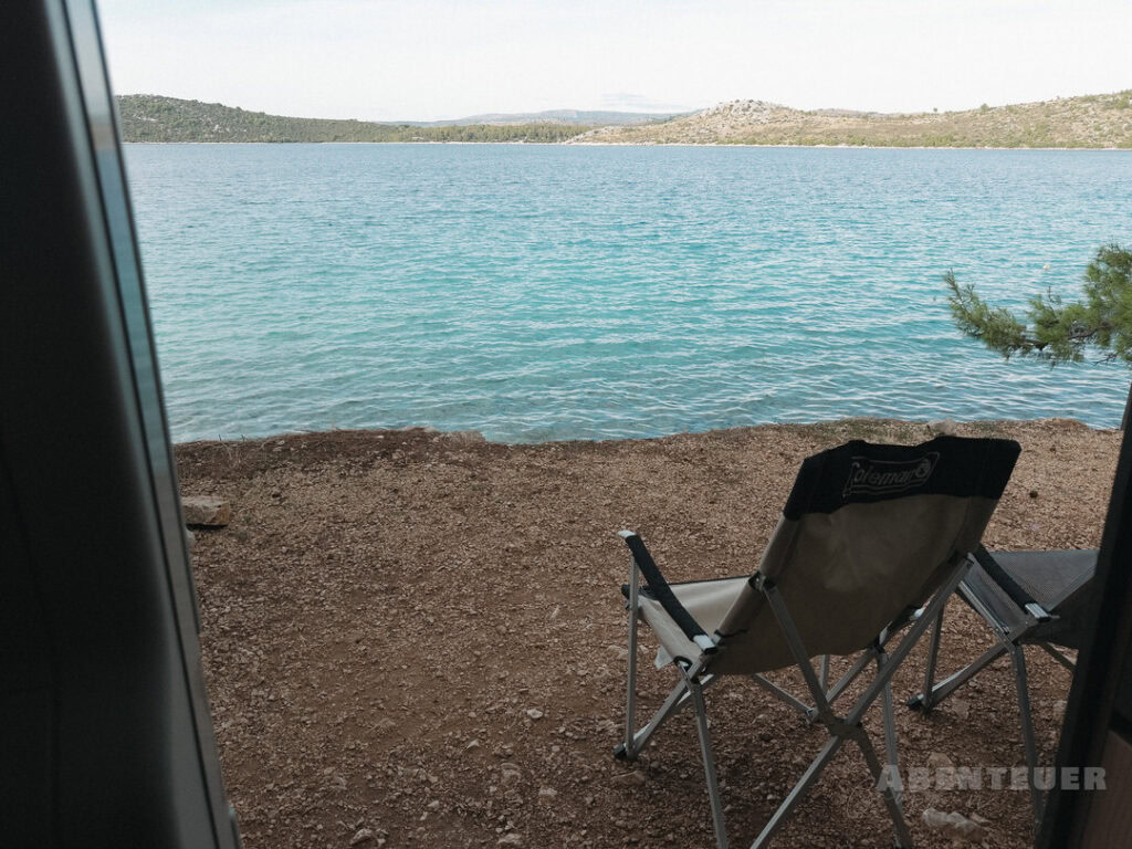 Kurz vor Šibenik hielten wir noch zum Essen, bevor wir unseren kleinen, gemütlichen Campingplatz am Meer erreichten. Ruhig und idyllisch gelegen, war er der perfekte Ort, um eine Nacht entspannt zu verbringen und dem Meeresrauschen zu lauschen.