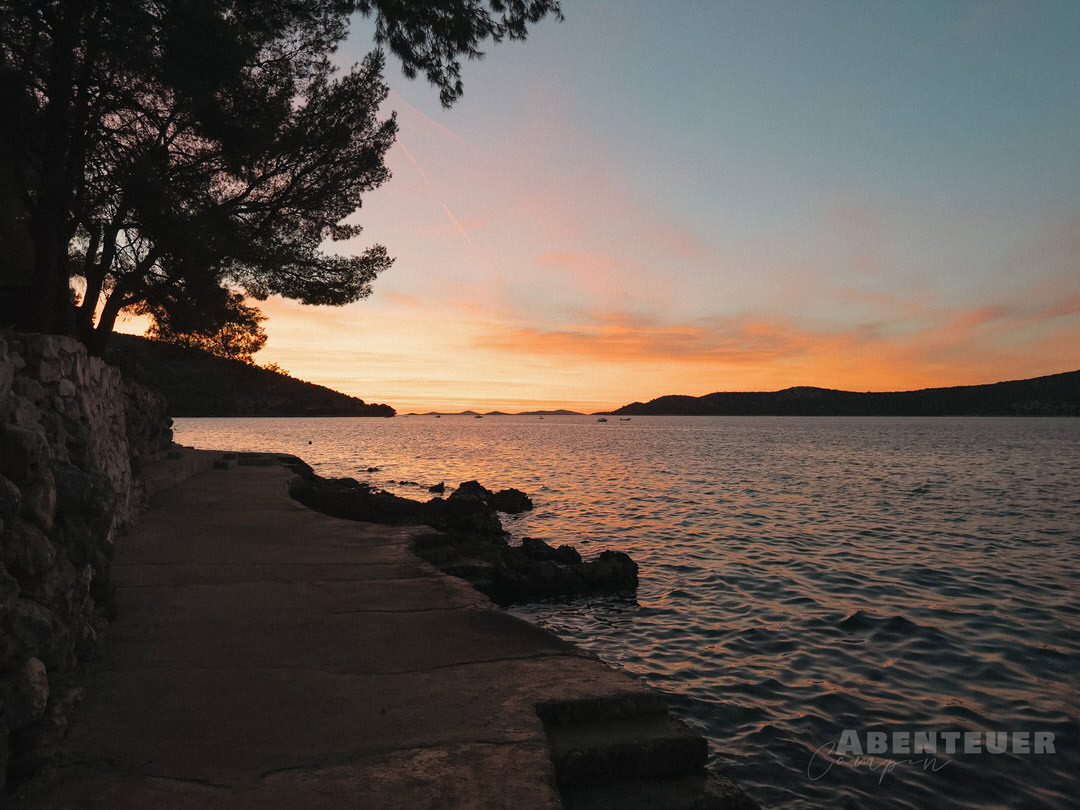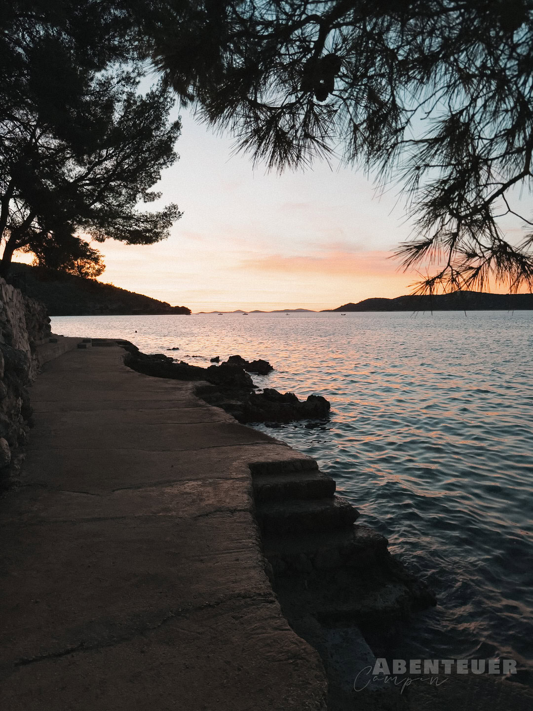 Kurz vor Šibenik hielten wir noch zum Essen, bevor wir unseren kleinen, gemütlichen Campingplatz am Meer erreichten. Ruhig und idyllisch gelegen, war er der perfekte Ort, um eine Nacht entspannt zu verbringen und dem Meeresrauschen zu lauschen.