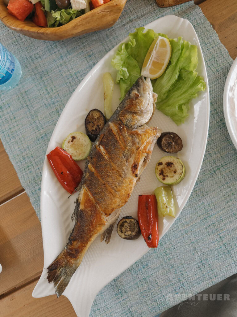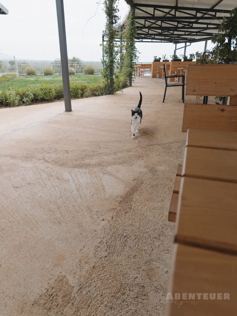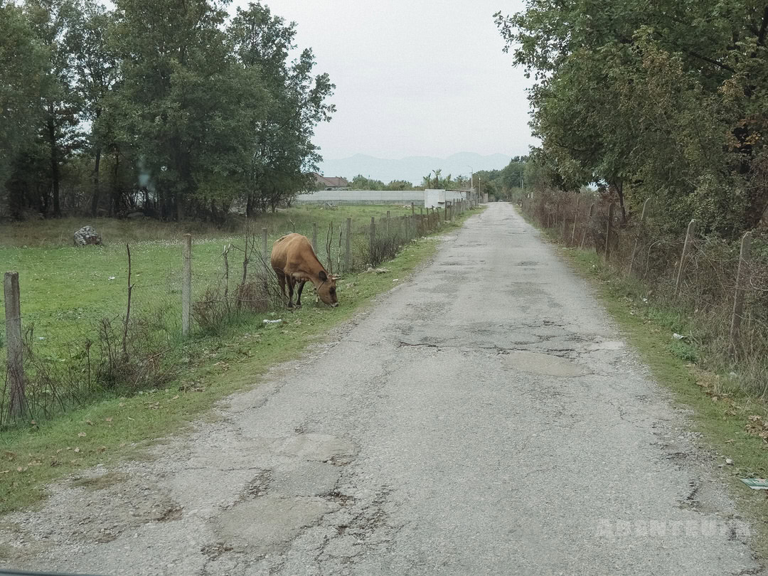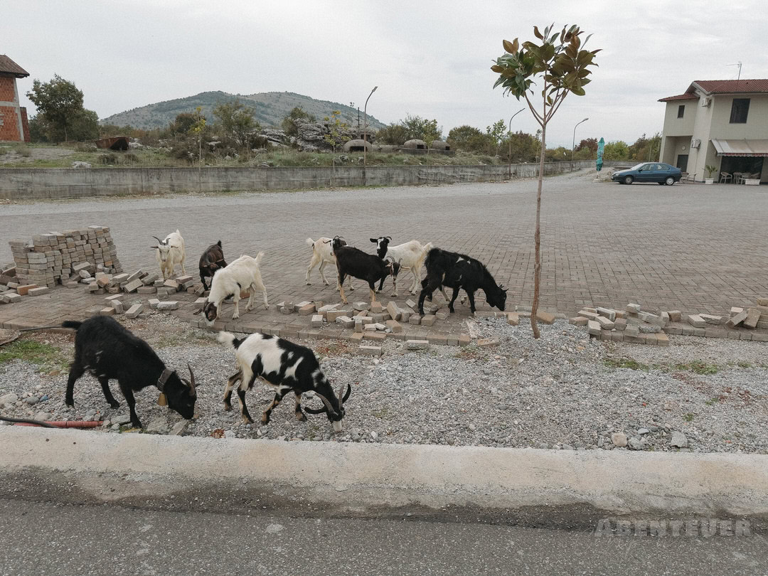 Unser Weg führte uns weiter nach Albanien zum Liqeni Agroturizëm Restorant & Camping. Bereits auf der Fahrt dorthin begegneten uns zahlreiche frei laufende Tiere – Ziegen, Kühe und Schweine –, die ganz selbstverständlich zur Landschaft gehörten und das Bild des Landes prägten.