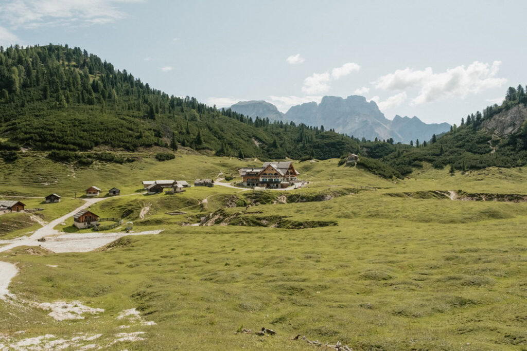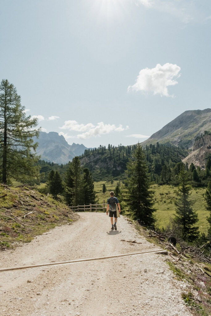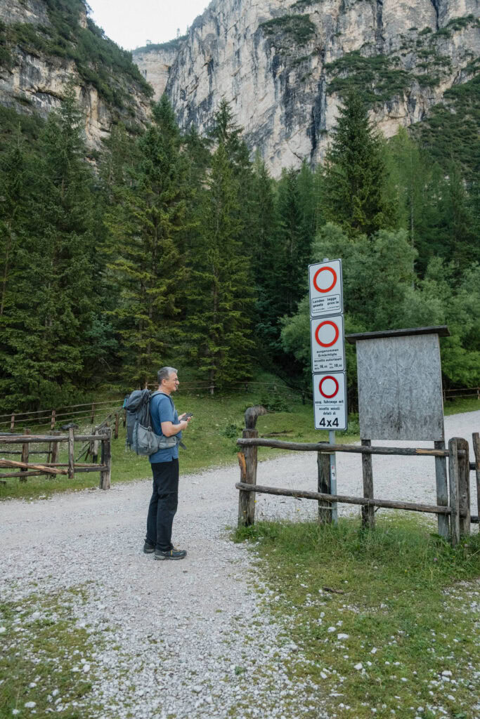 Von unserem Campingplatz Al Plan in St. Vigil in Enneberg machten wir uns mit dem Bus auf zur nächsten Wanderung. Startpunkt war der Parkplatz bei der Berghütte Pederü in den Dolomiten in Südtirol, Italien.