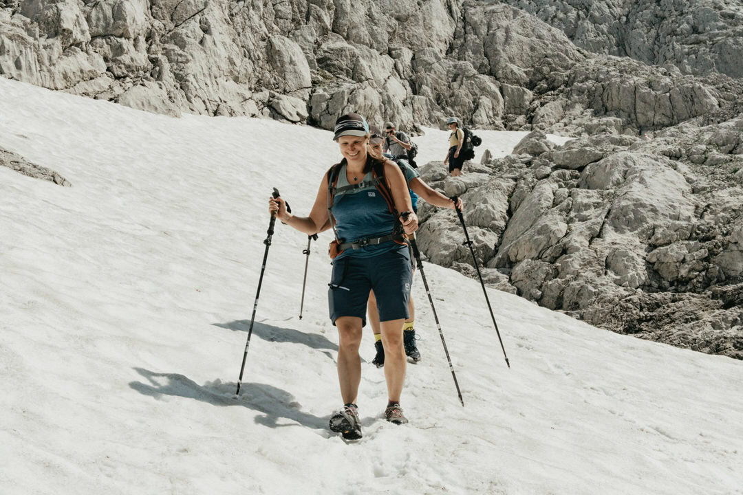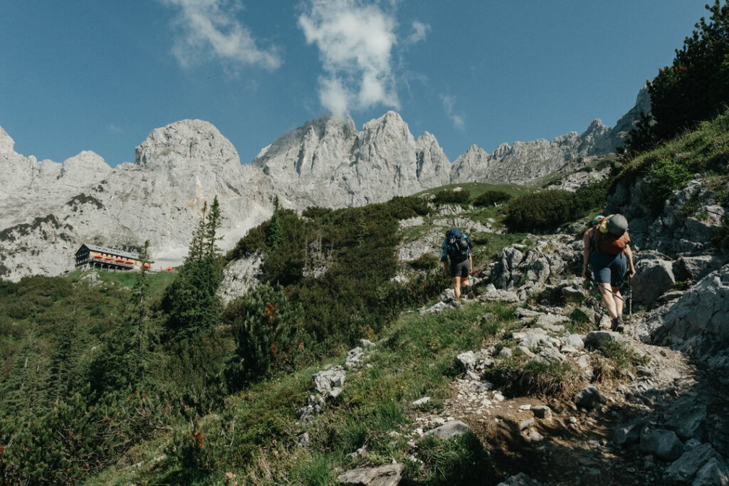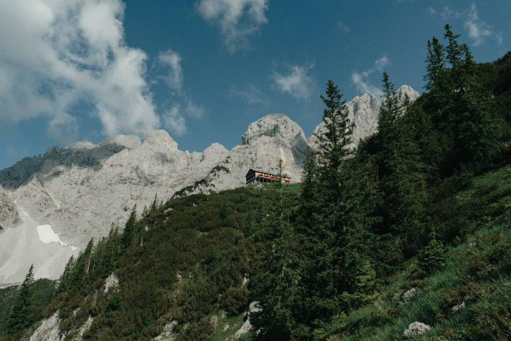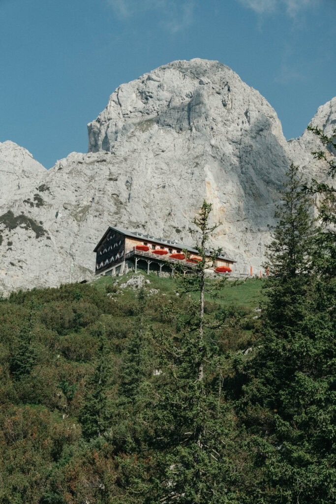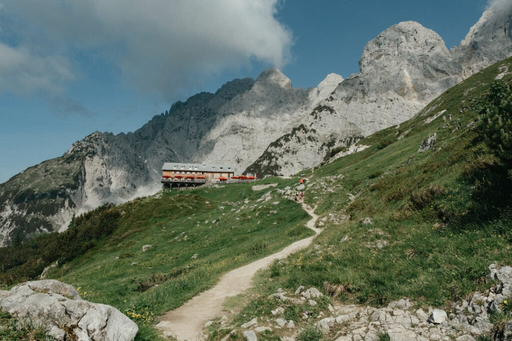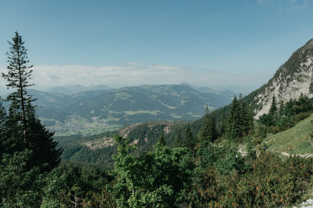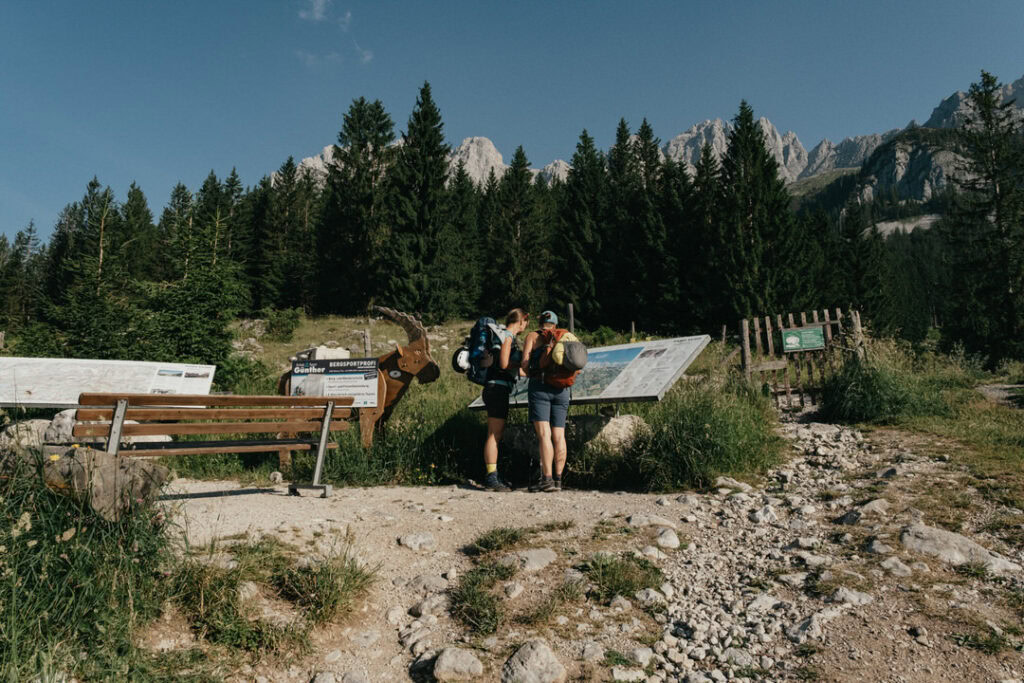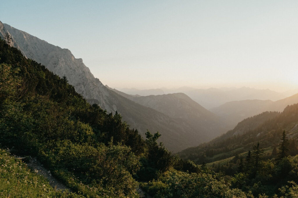 Anschließend führte uns der Weg rund um den Sockel der Fleischbank und weiter auf dem Eggersteig, der rechts vom Pfad abzweigt. Vorbei an felsigen Abschnitten und schattigen Waldpassagen ging es langsam bergab. Schließlich erreichten wir den letzten Abschnitt: einen gemütlichen Abstieg in östlicher Richtung, der uns direkt zum Stripsenjochhaus brachte – ein perfekter Ort, um die Beine auszuruhen, den Blick über das Kaisergebirge zu genießen und den Tag ausklingen zu lassen.