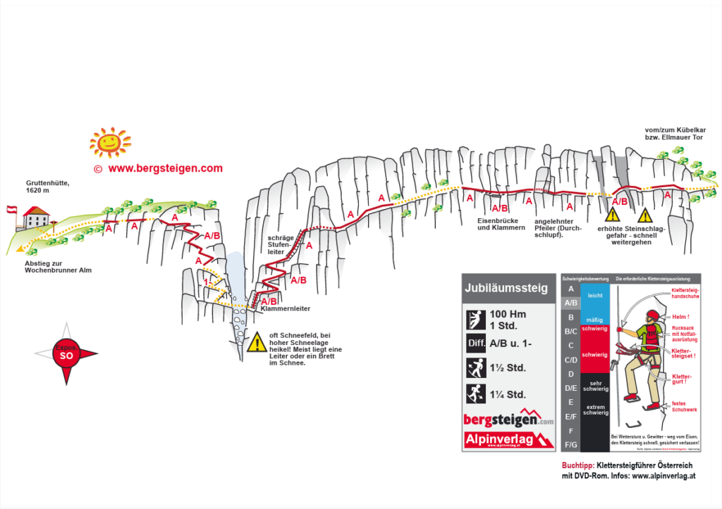 Nach insgesamt ca. 1,5 bis 2 Stunden erreicht man die Gruttenhütte (1.620 m), wo man sich eine Pause gönnen, etwas trinken oder eine kleine Brotzeit genießen kann. Der Weg ist gut markiert (rote/weiße Markierungen) und für geübte Wanderer problemlos zu bewältigen, Trittsicherheit ist jedoch empfohlen.
